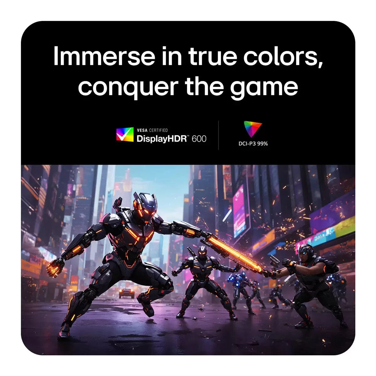 Our gaming monitor supports a wide color spectrum, 99% (Typ.) of the DCI-P3 color gamut, expressing high-fidelity color for reproducing with VESA DisplayHDR 600, enabling a realistic gaming experience.