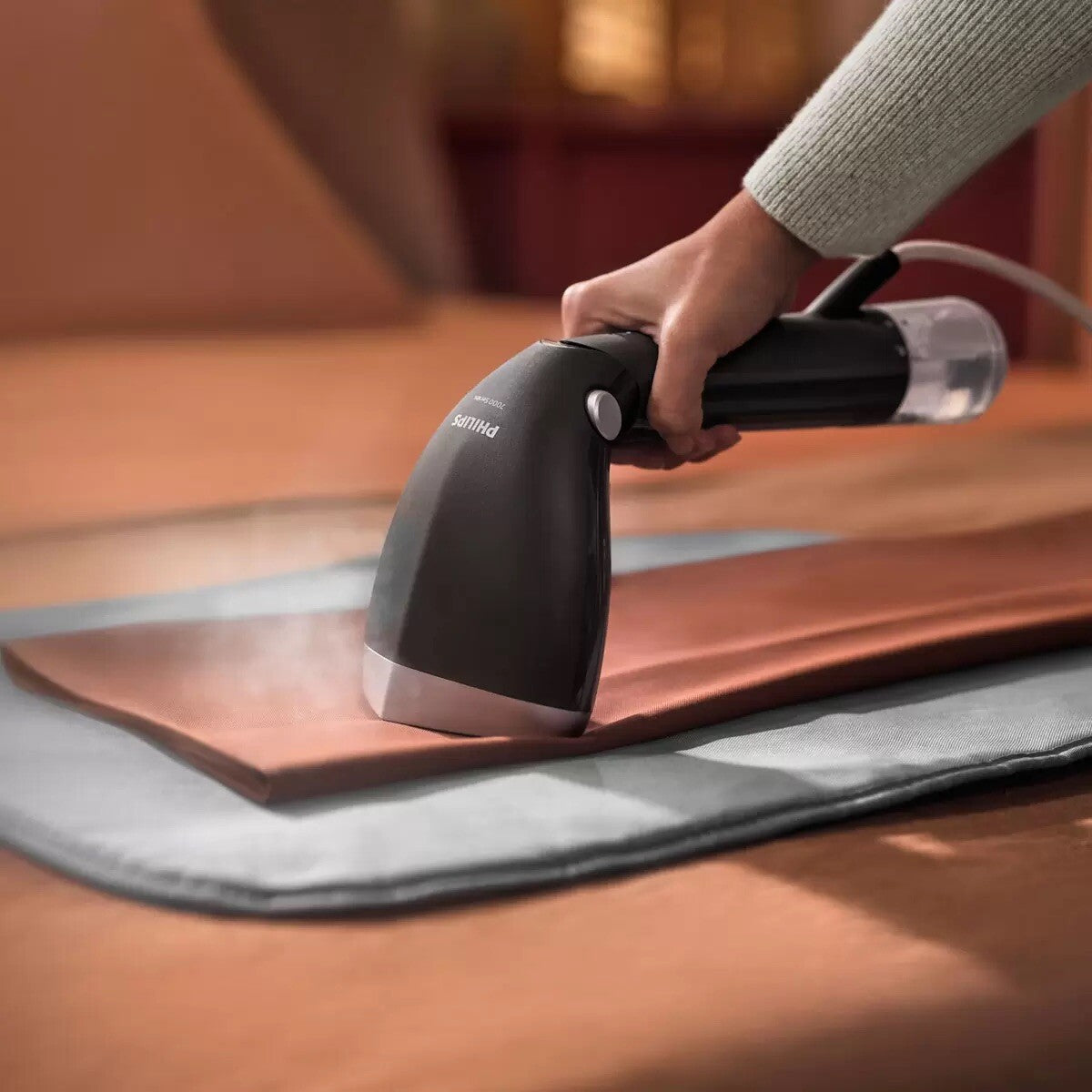 Everything you own can now be ready to wear in a flash with Philips Handheld Steamer 7000 Series. Its adjustable head and pointed steam plate tip remove creases quickly and comfortably at any angle, with OptimalTemp to guarantee no burns.