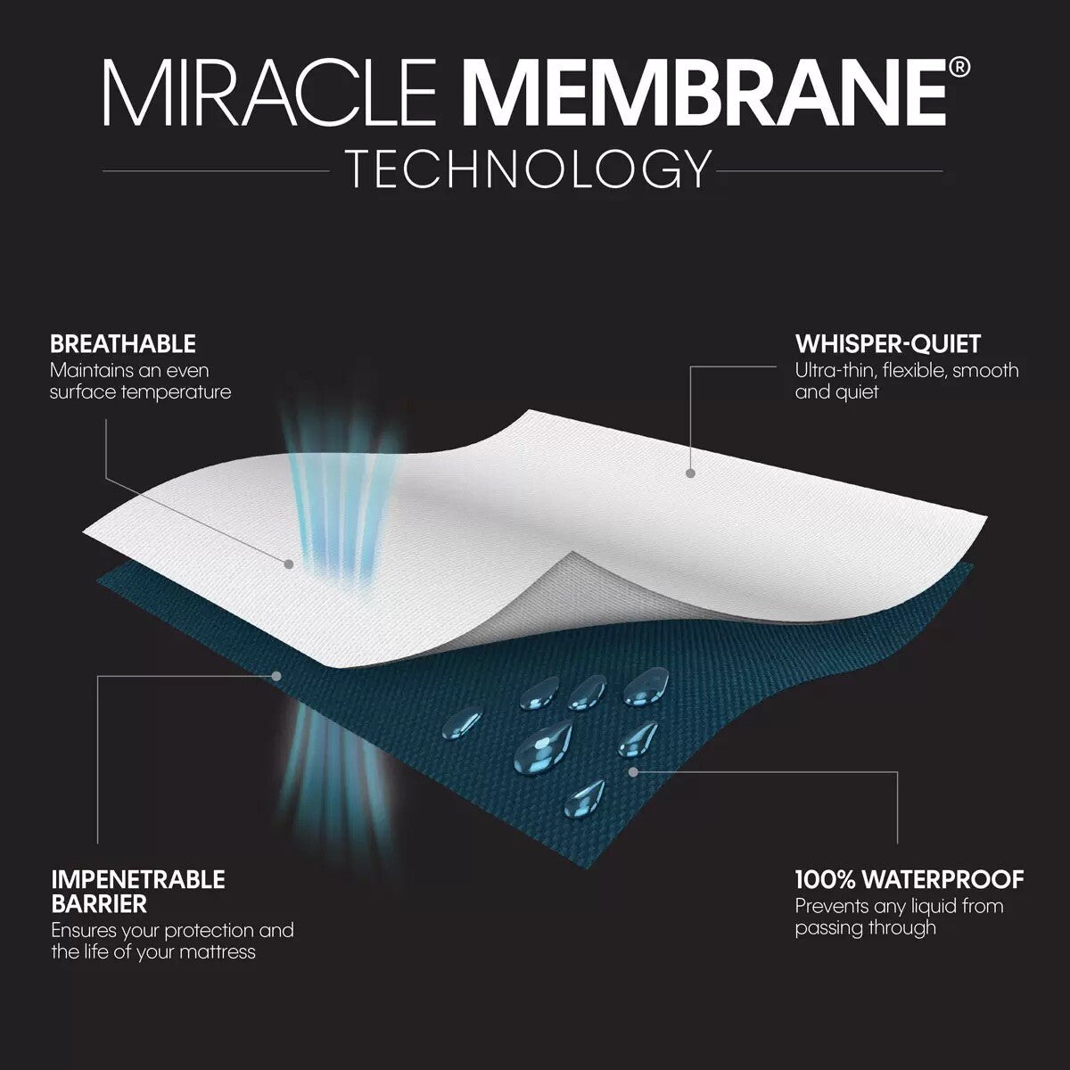 The Cotton Mattress Protector by Protect-A-Bed keeps your bed clean and comfortable for a good night’s sleep. The soft sleep surface is gentle to your skin and can be slept on directly as a bed sheet. The miracle membrane underneath the cotton sleep surface creates an anti-allergen barrier to help the mattress last longer and stay clean and allows air to freely pass through which prevents heat build-up. It also acts as a barrier against sweat, accidental spills and allergens from entering your mattress.